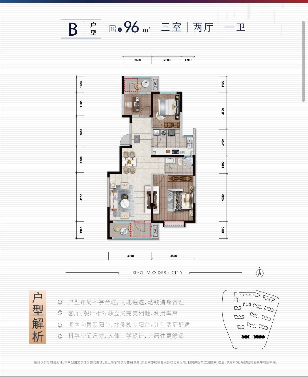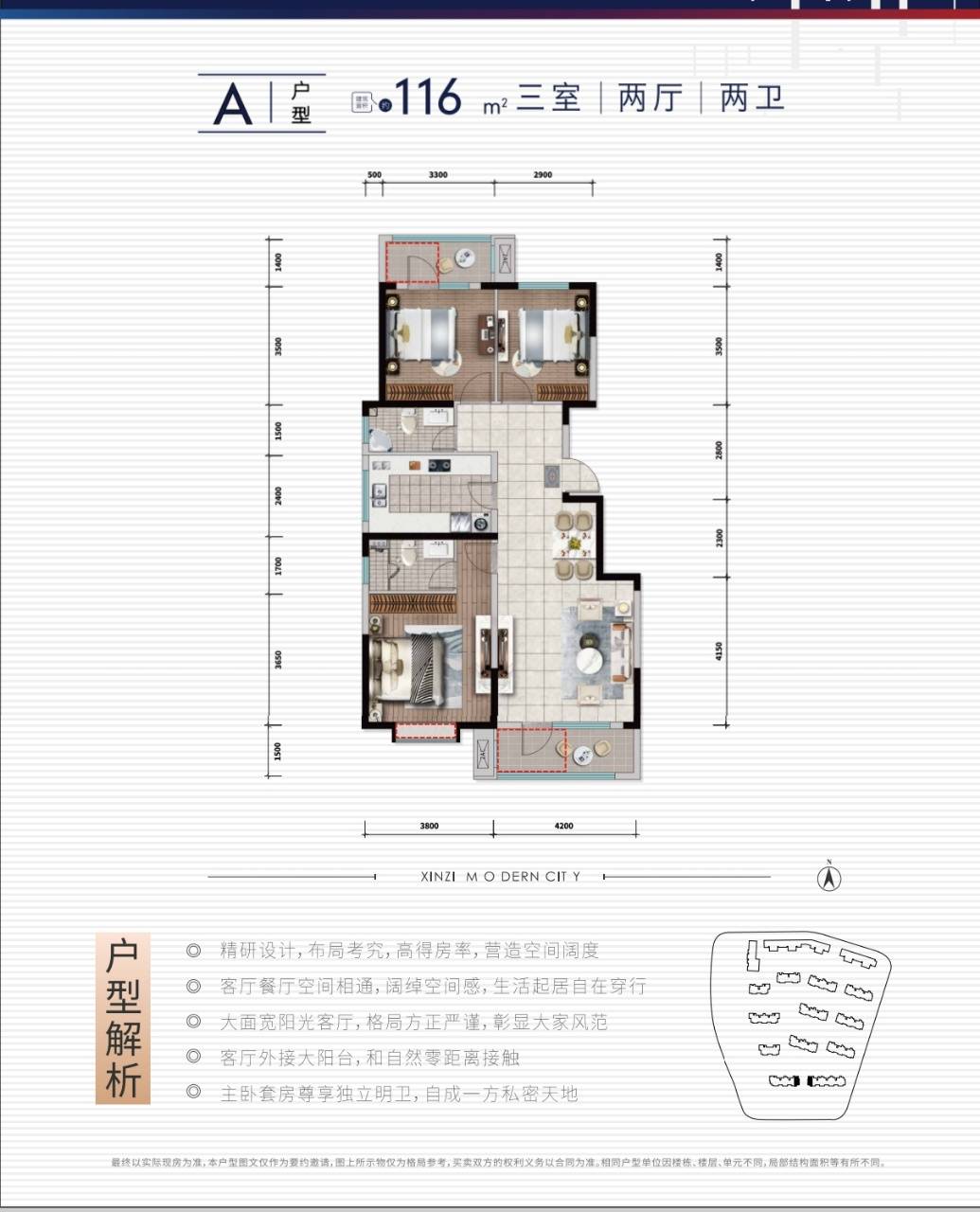 建筑面积: 116㎡(3房2厅2卫)